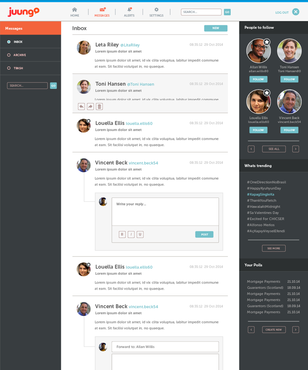 Juungo. An easily customised white labeled platform to align with an existing company’s branding.